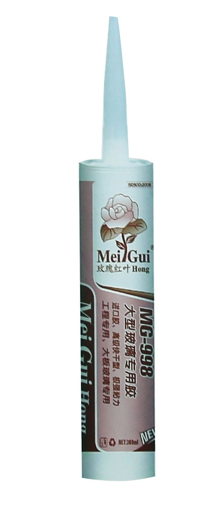 产品特性 MG-998大型玻璃专用胶执行国家GB/T14683-2003标准,是一种类似软膏状 ,一旦接触空气中水分便会自动硫化成坚韧的橡胶类固体材料,适用于顶端或侧壁的接缝而不会发生下陷 、塌落或流走,尤其不会因自身重量而流动,具有优良的耐风化、抗震动 、防潮、抗异味和耐冷热功能;本产品是新型配方进口快干型硅酮玻璃胶,具有特强粘接力,透明度好,施胶顺手等特点;并且不会产生气泡,耐老化性极佳 ,永不变白 。